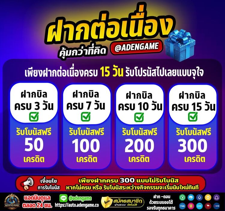 อย่าลืมใช้ประโยชน์จากโปรโมชั่นและโบนัสที่ Adengame มอบให้ เพราะสิ่งเหล่านี้สามารถเพิ่มทุนของคุณได้อย่างมีนัยสำคัญ อย่างไรก็ดี ควรอ่านเงื่อนไขและข้อกำหนดให้ละเอียดก่อนรับโบนัส เพื่อไม่ให้เกิดปัญหาตามมาในภายหลัง การใช้โบนัสอย่างชาญฉลาดจะช่วยให้คุณมีโอกาสในการชนะมากขึ้นโดยไม่ต้องเพิ่มทุนของคุณเอง